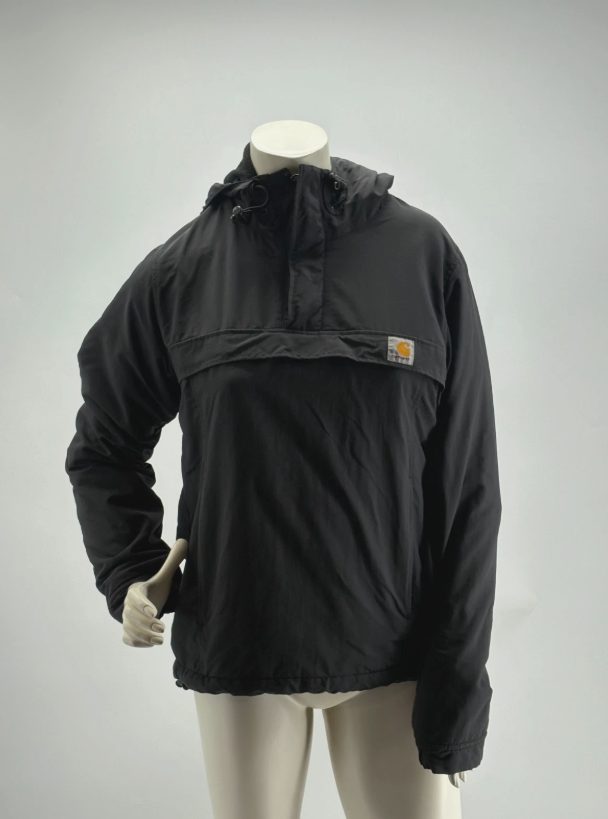 Giacca a vento Carhartt originale, modello anorak con cappuccio regolabile e chiusura parziale a zip sul davanti.