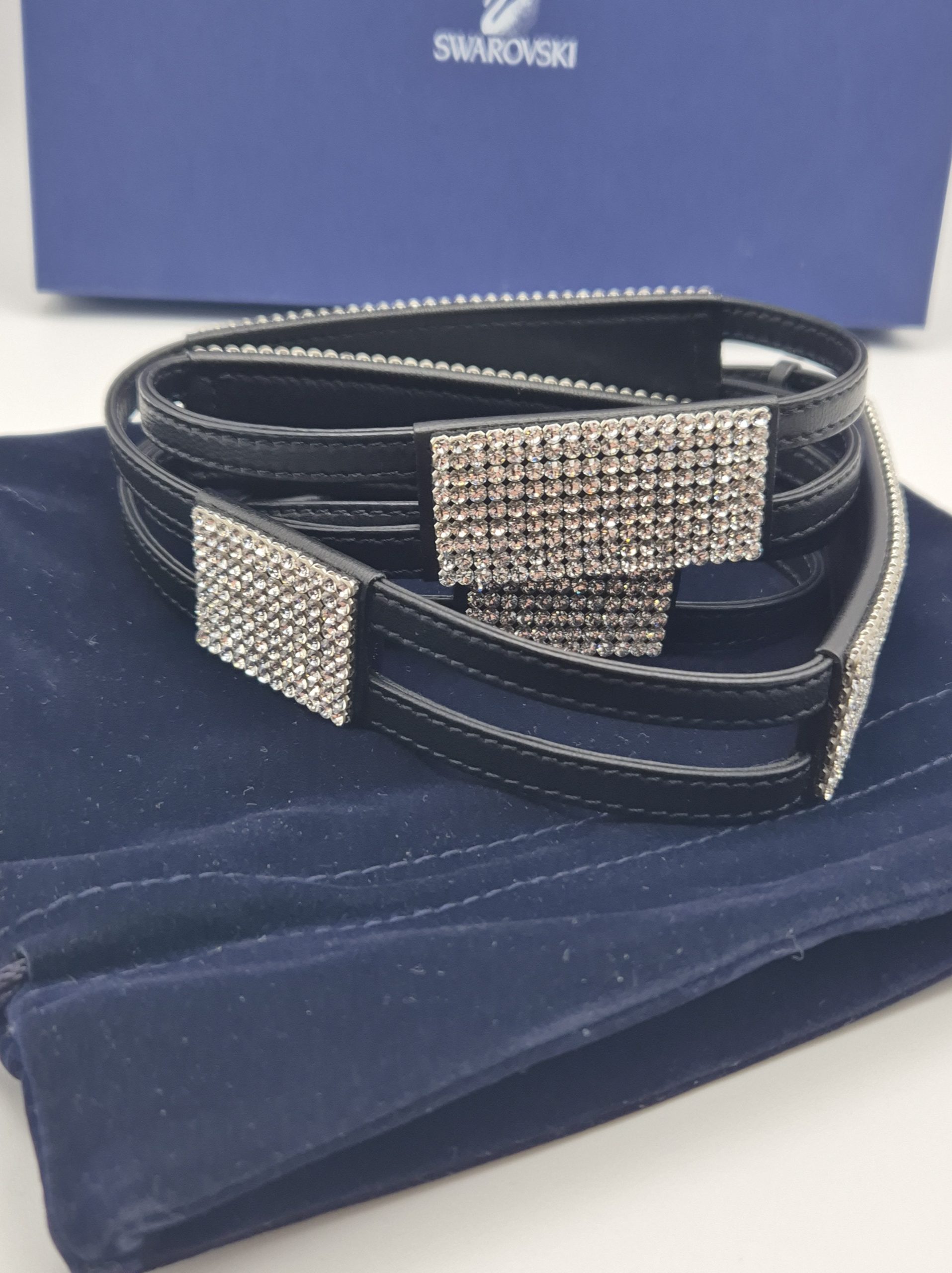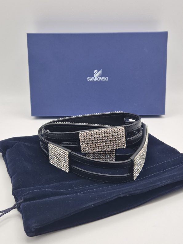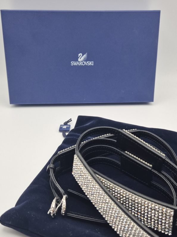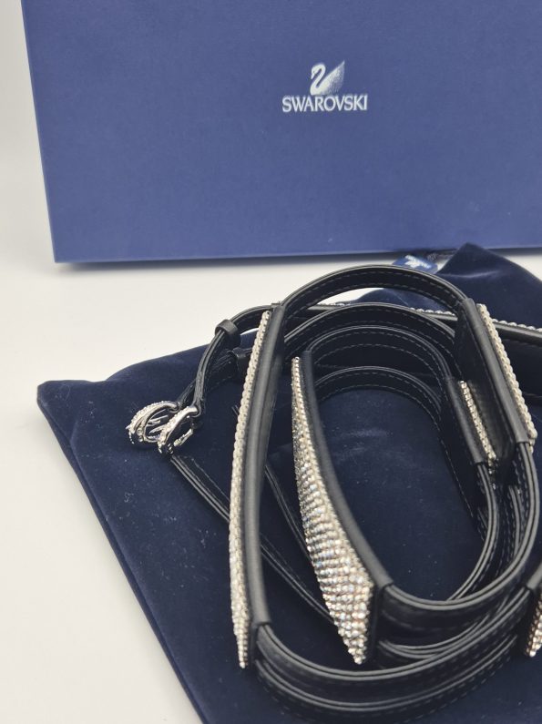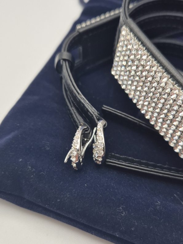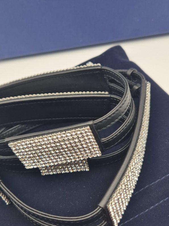 Splendida cintura Swarovski originale, in pelle nera con inserti ricoperti di cristalli Swarovski.
