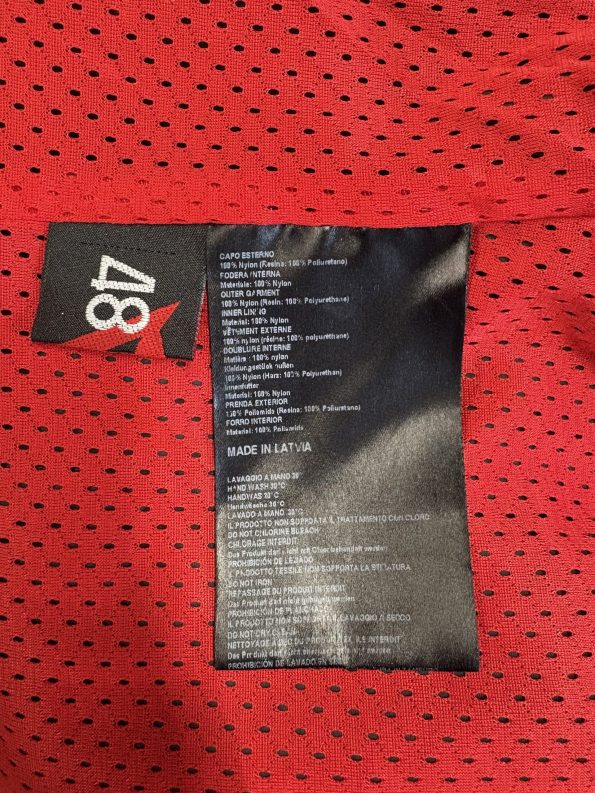Colore nero con fodera interna rossa in rete traspirante, logo Dainese ricamato sul retro e sulle maniche.