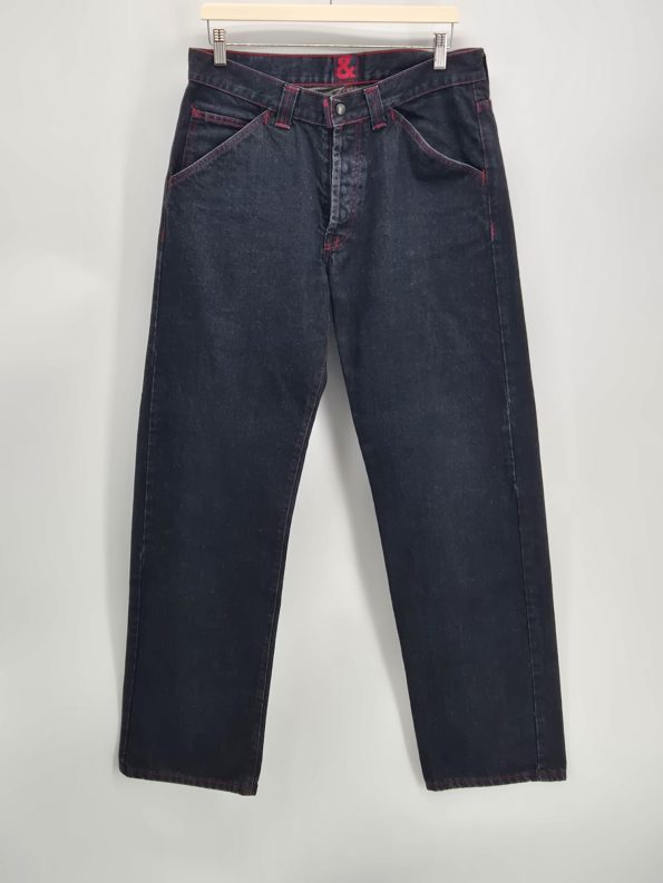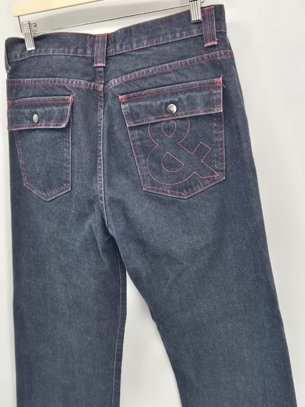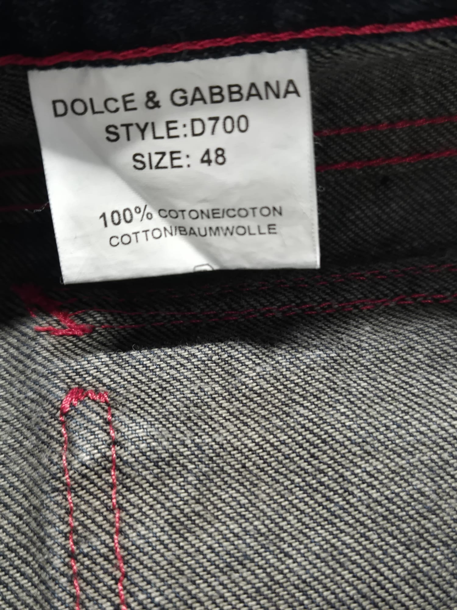 Jeans Dolce & Gabbana modello D700 in autentico stile Y2K, con iconico ricamo logo sulla tasca posteriore e cuciture a contrasto tipiche dei primi anni 2000. Vestibilità regular straight in pieno mood vintage italiano. Capo originale Made in Italy, difficile da trovare oggi in queste condizioni. Ottime condizioni generali.
