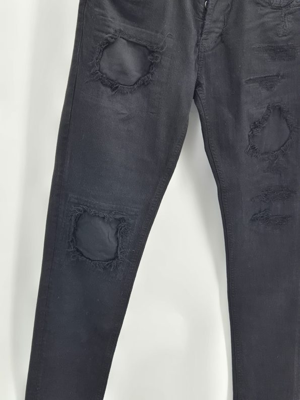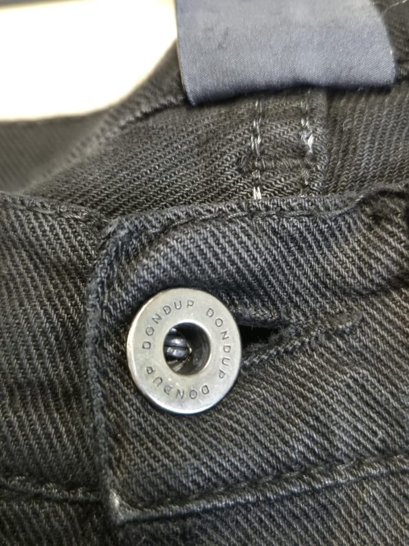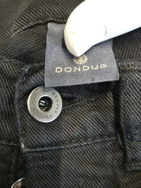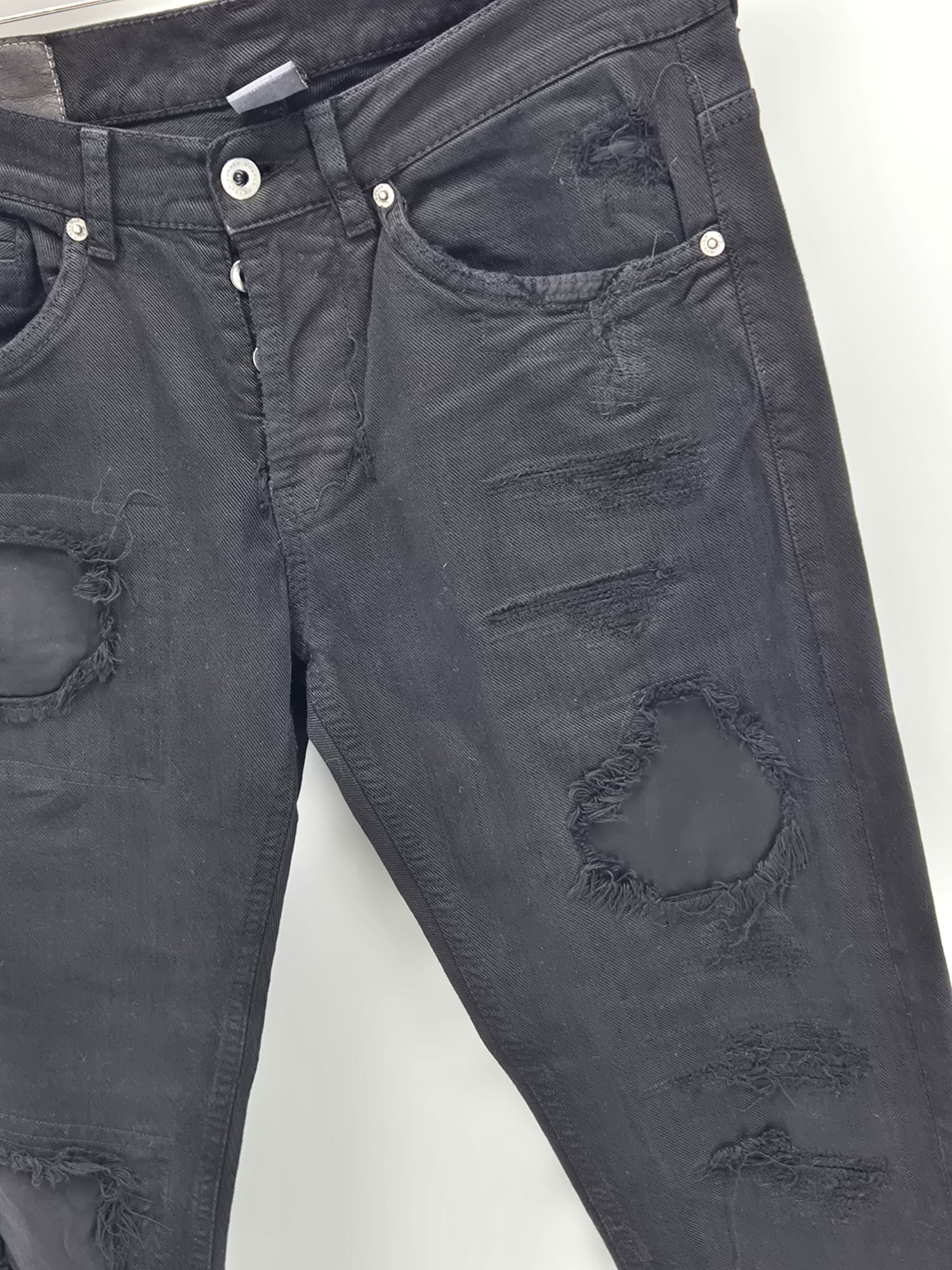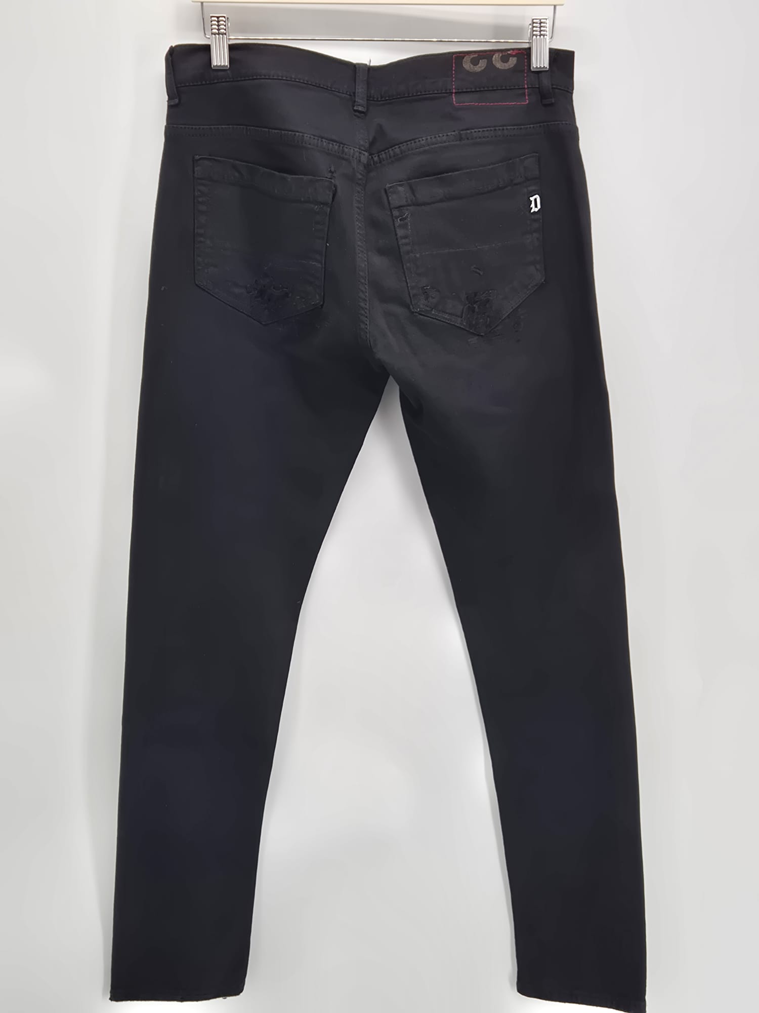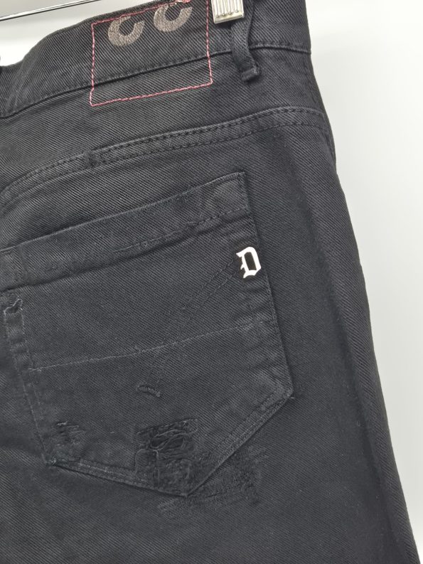 Jeans Dondup modello con strappi frontali e logo sul retro. Vestibilità slim, dettagli consumati studiati in stile distressed.