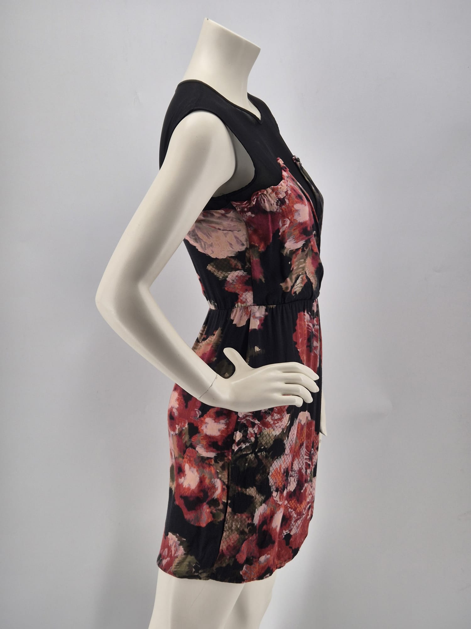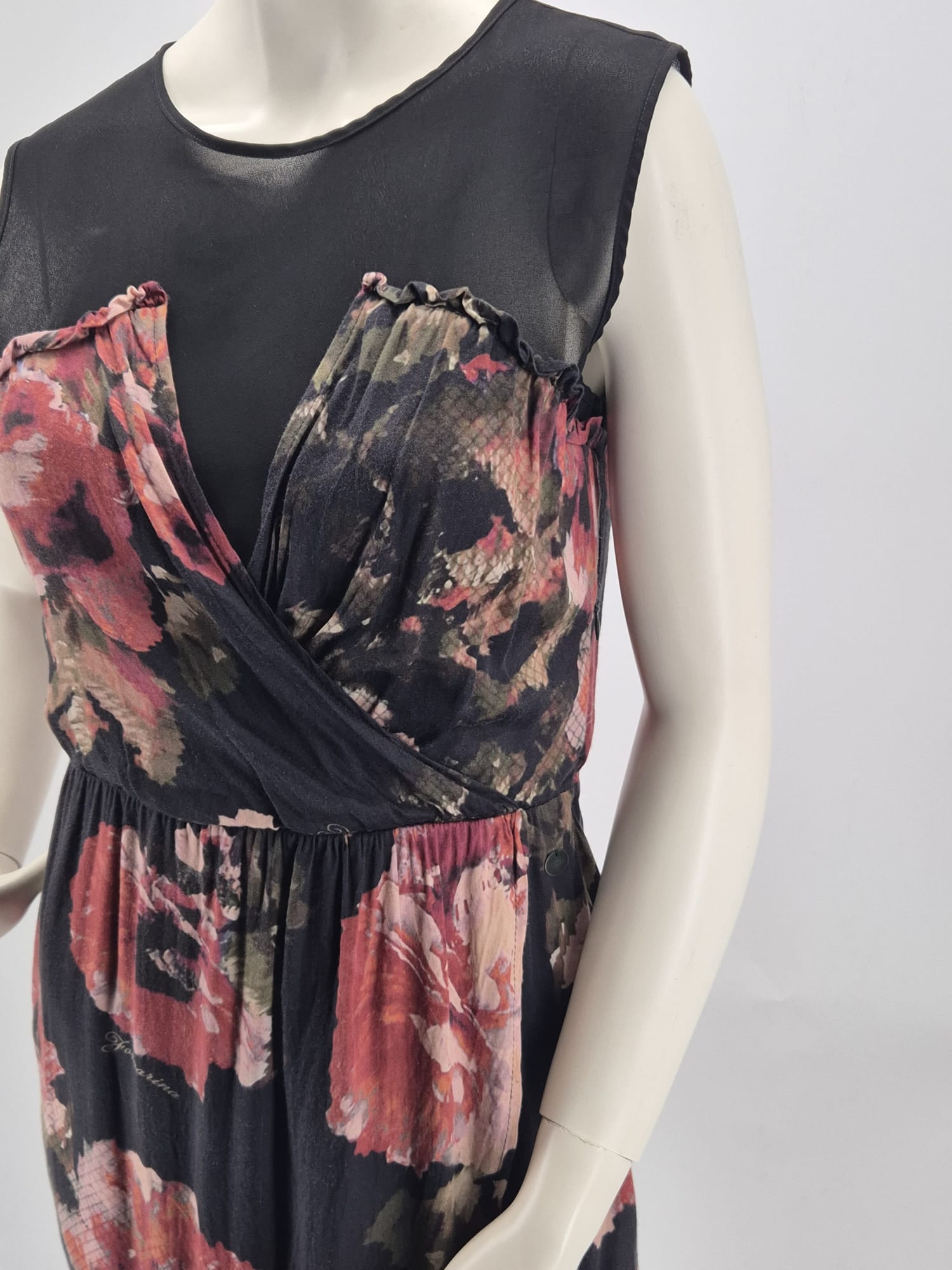Bellissimo Abito Donna Fornarina Con Fantasia Floreale Nei Toni Del Rosa, Rosso E Nero.