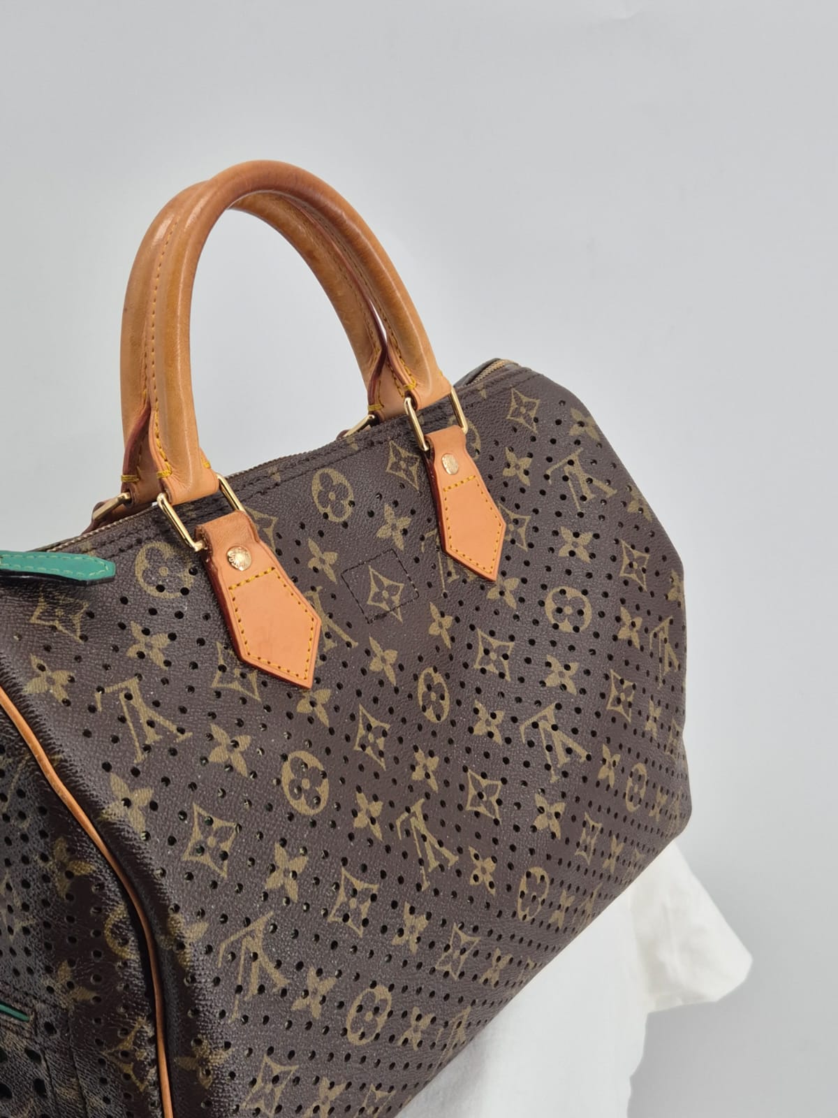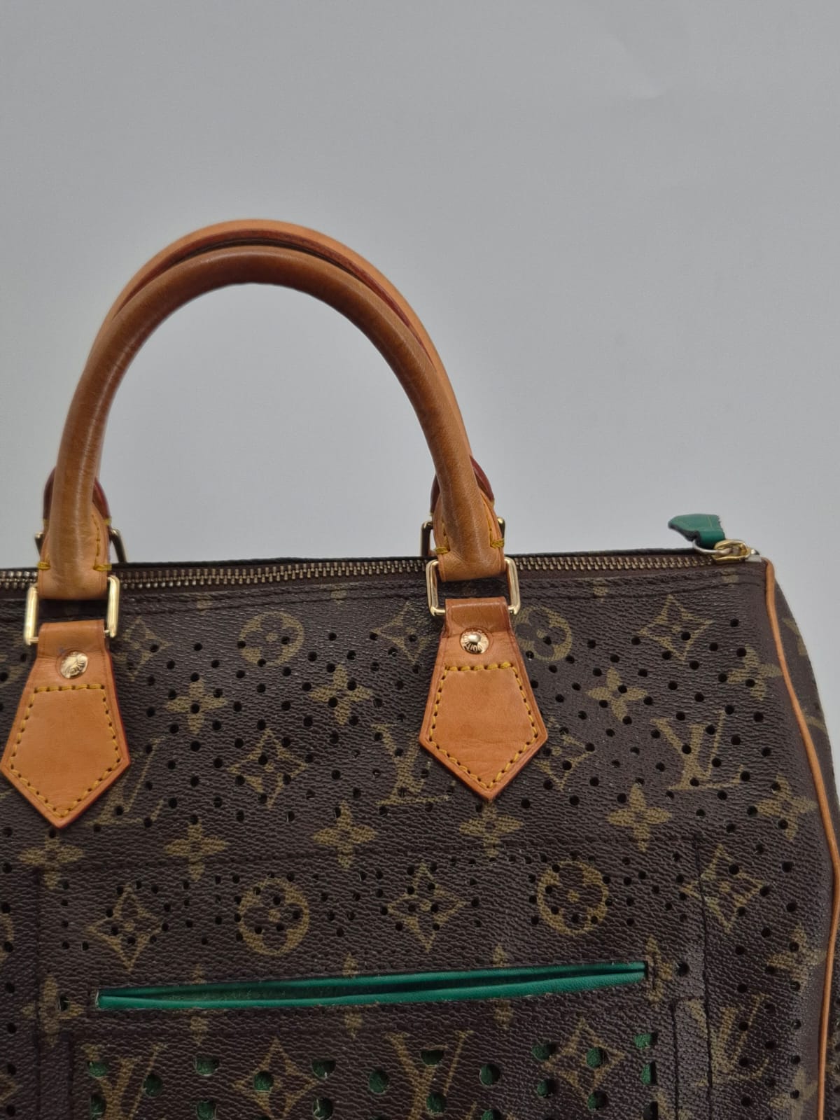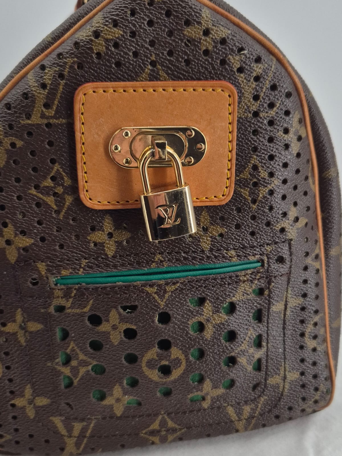 Louis Vuitton Speedy 30 Monogram Perforated, realizzata in tela Monogram traforata con interni verde smeraldo.