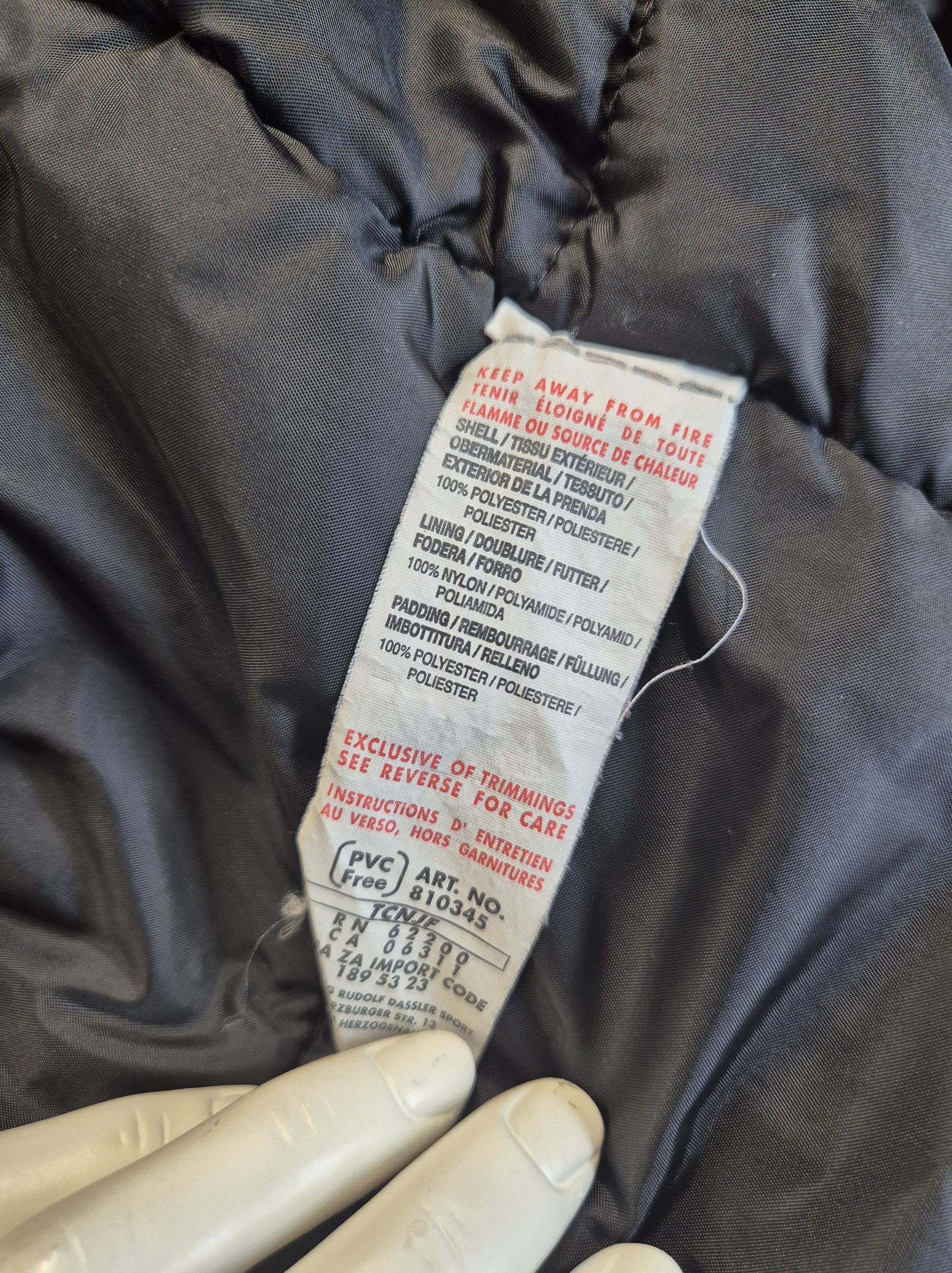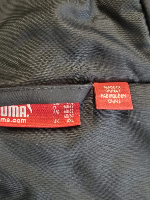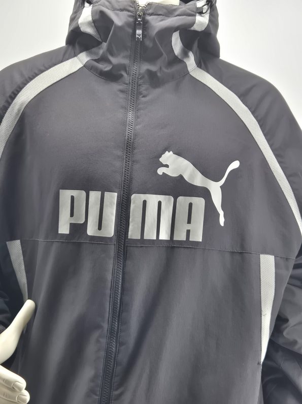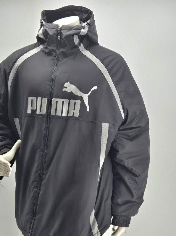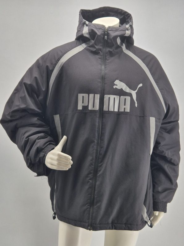 Giubbotto invernale originale Puma, modello vintage, colore nero con inserti grigi e maxi logo frontale.