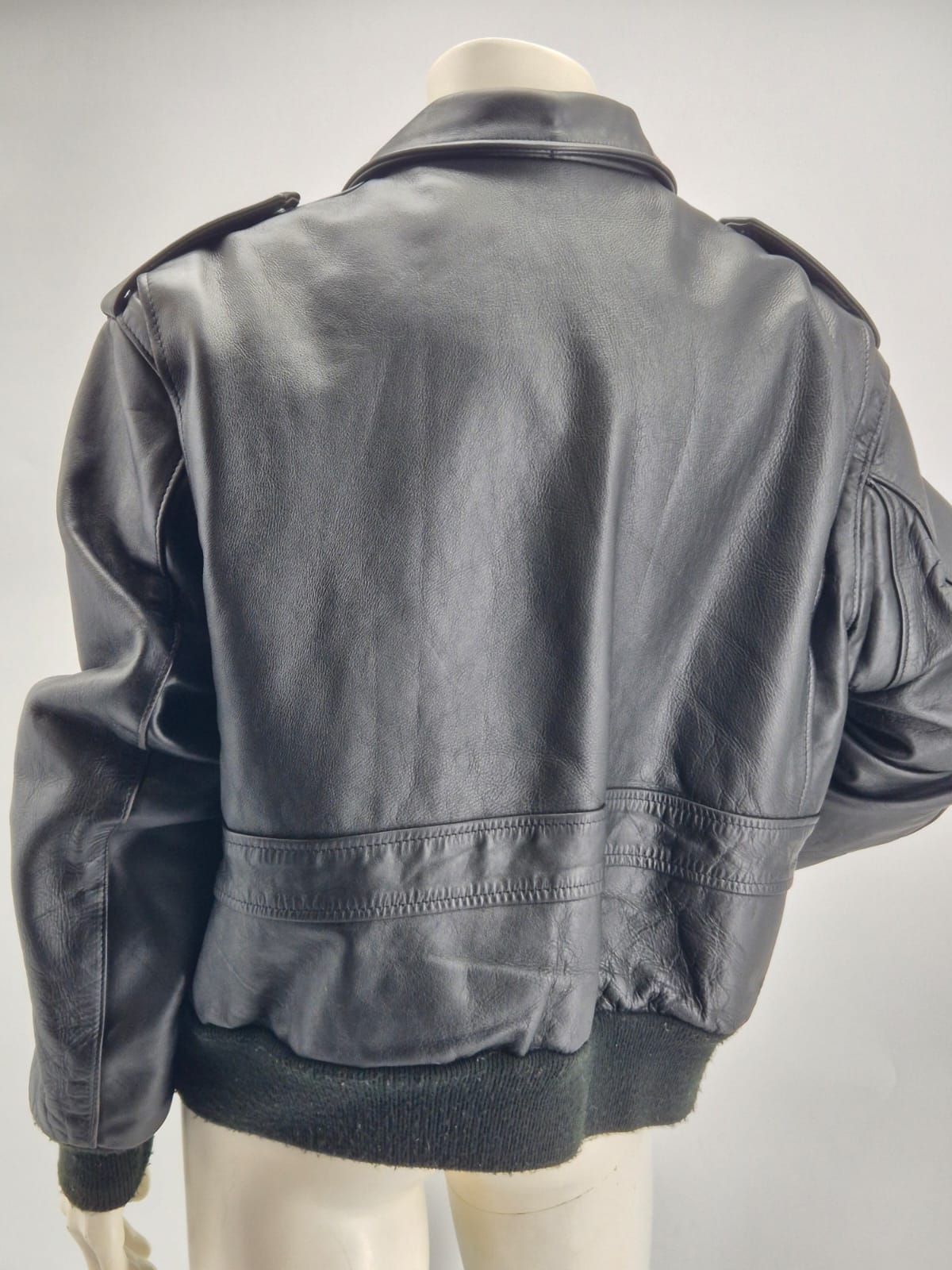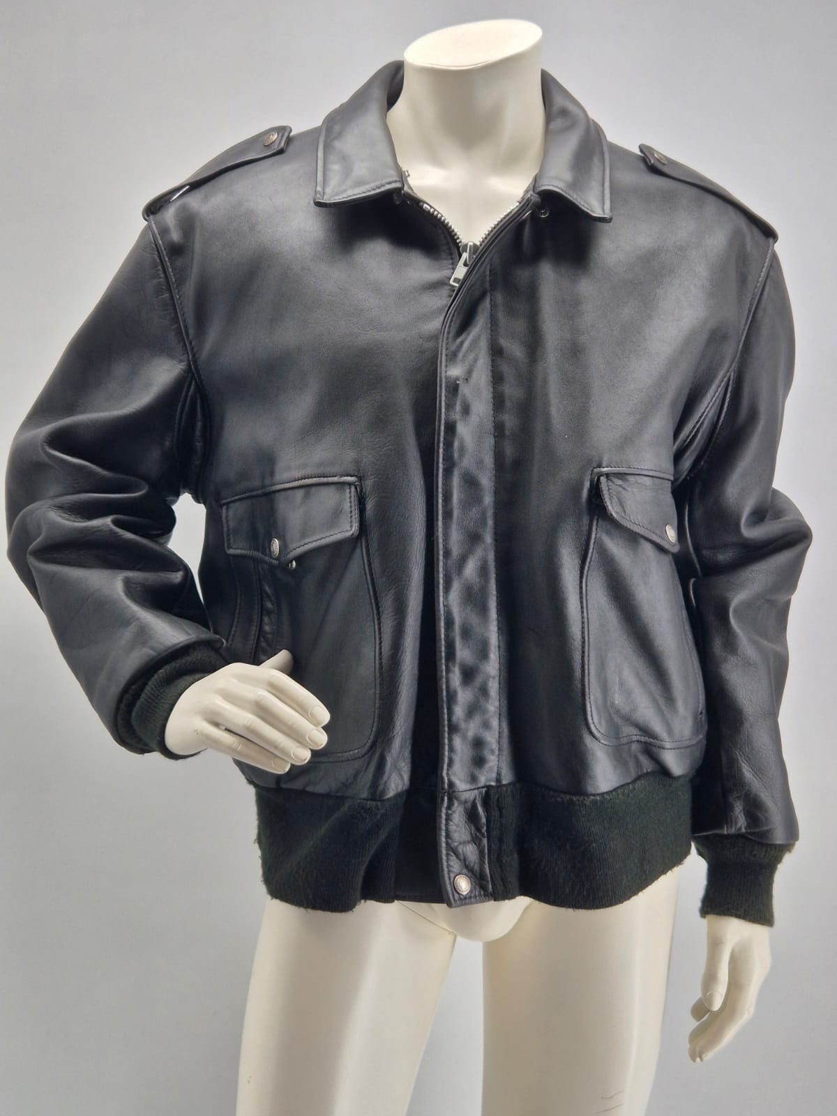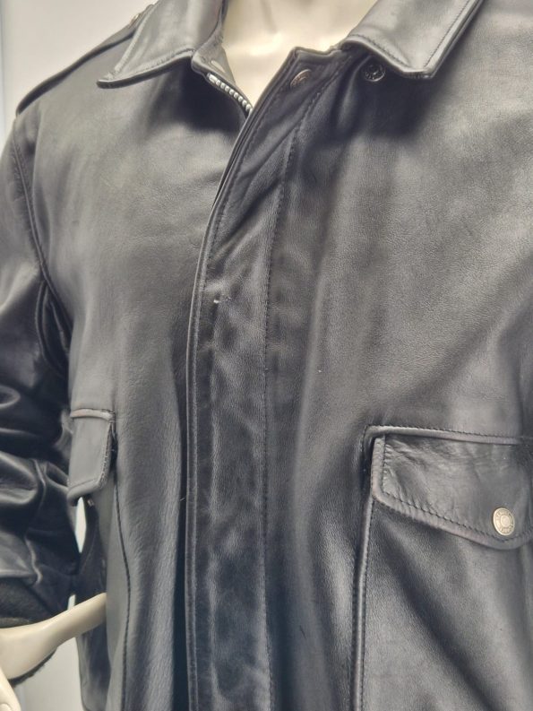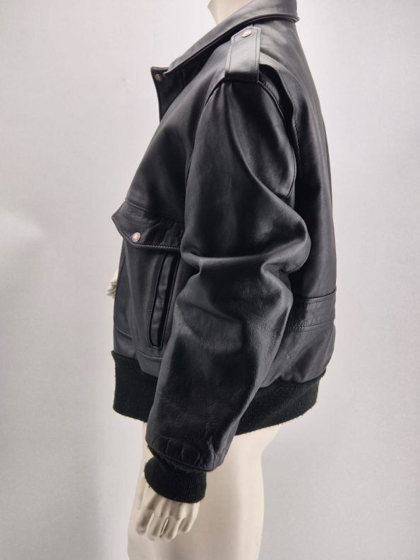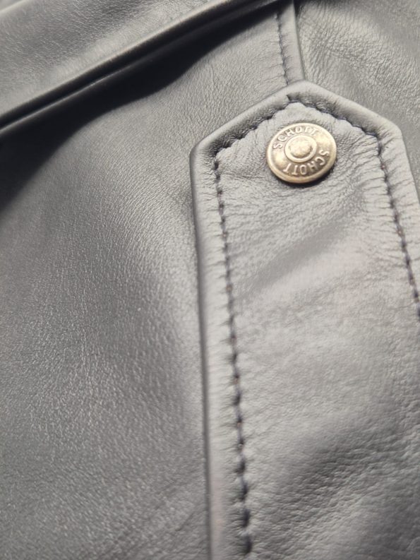 Stupenda giacca originale Schott N.Y.C. Made in USA, autentico capo vintage anni ’90 in vera pelle spessa e morbida, modello bomber/aviator con spalline militari.