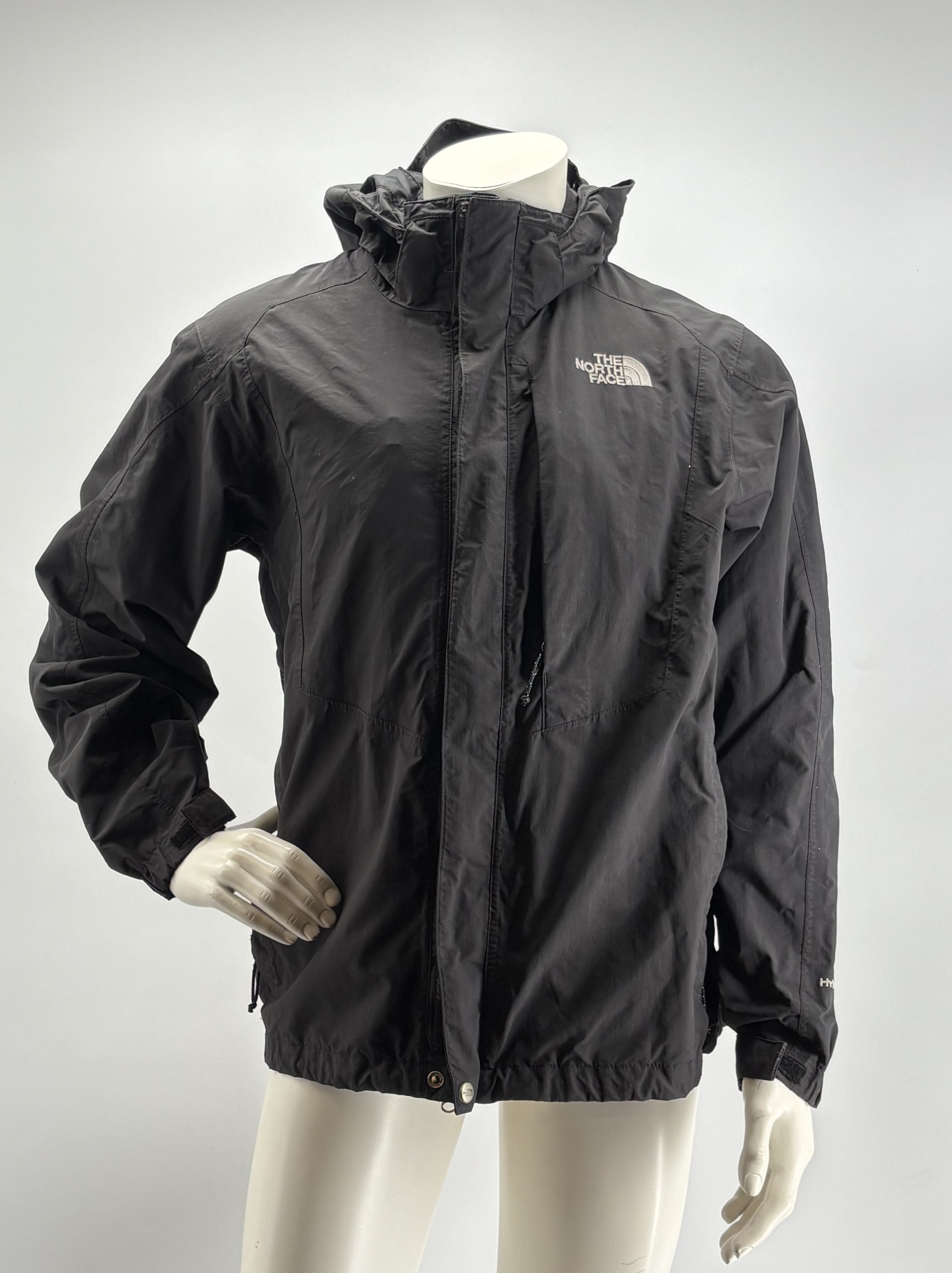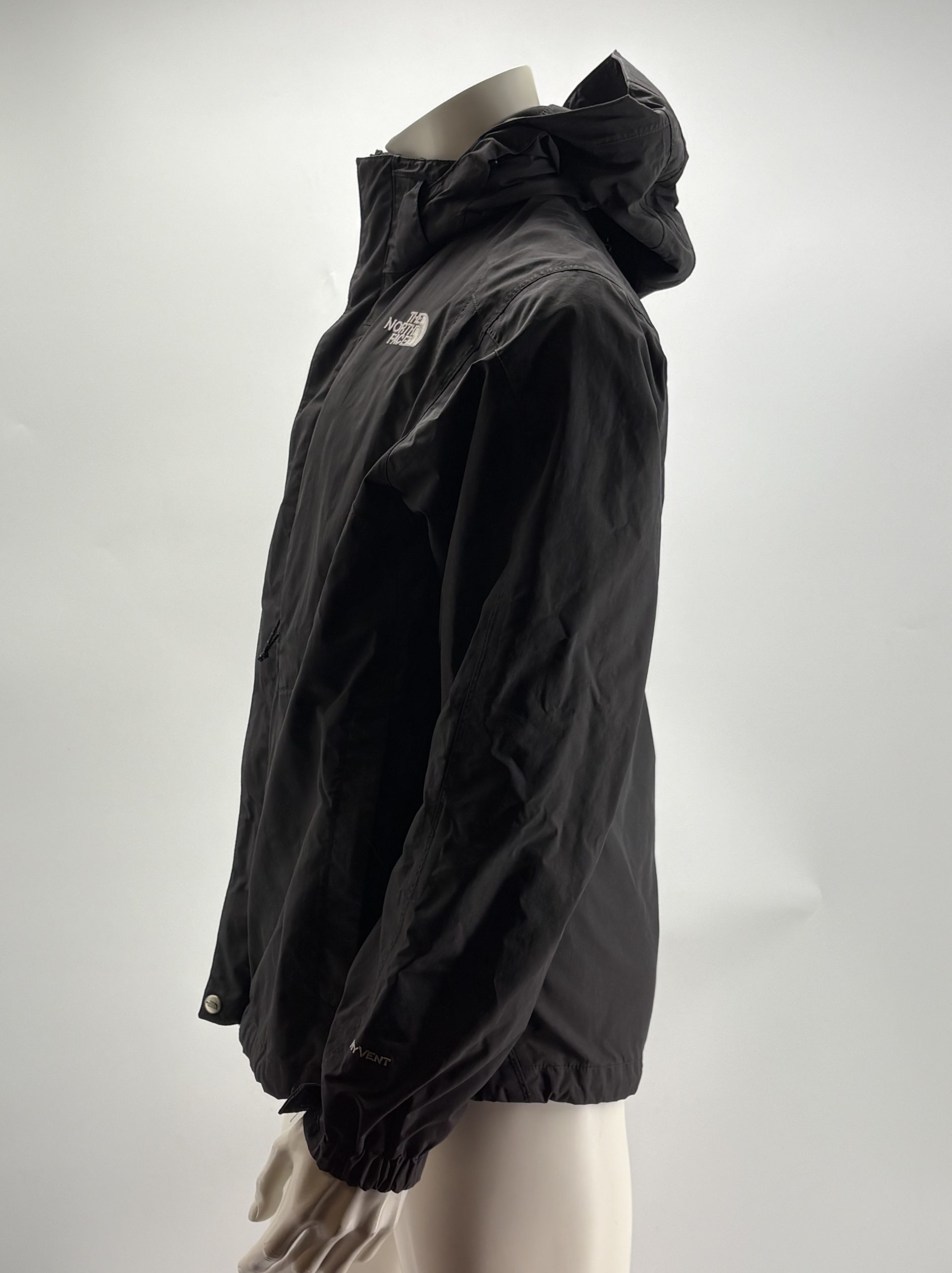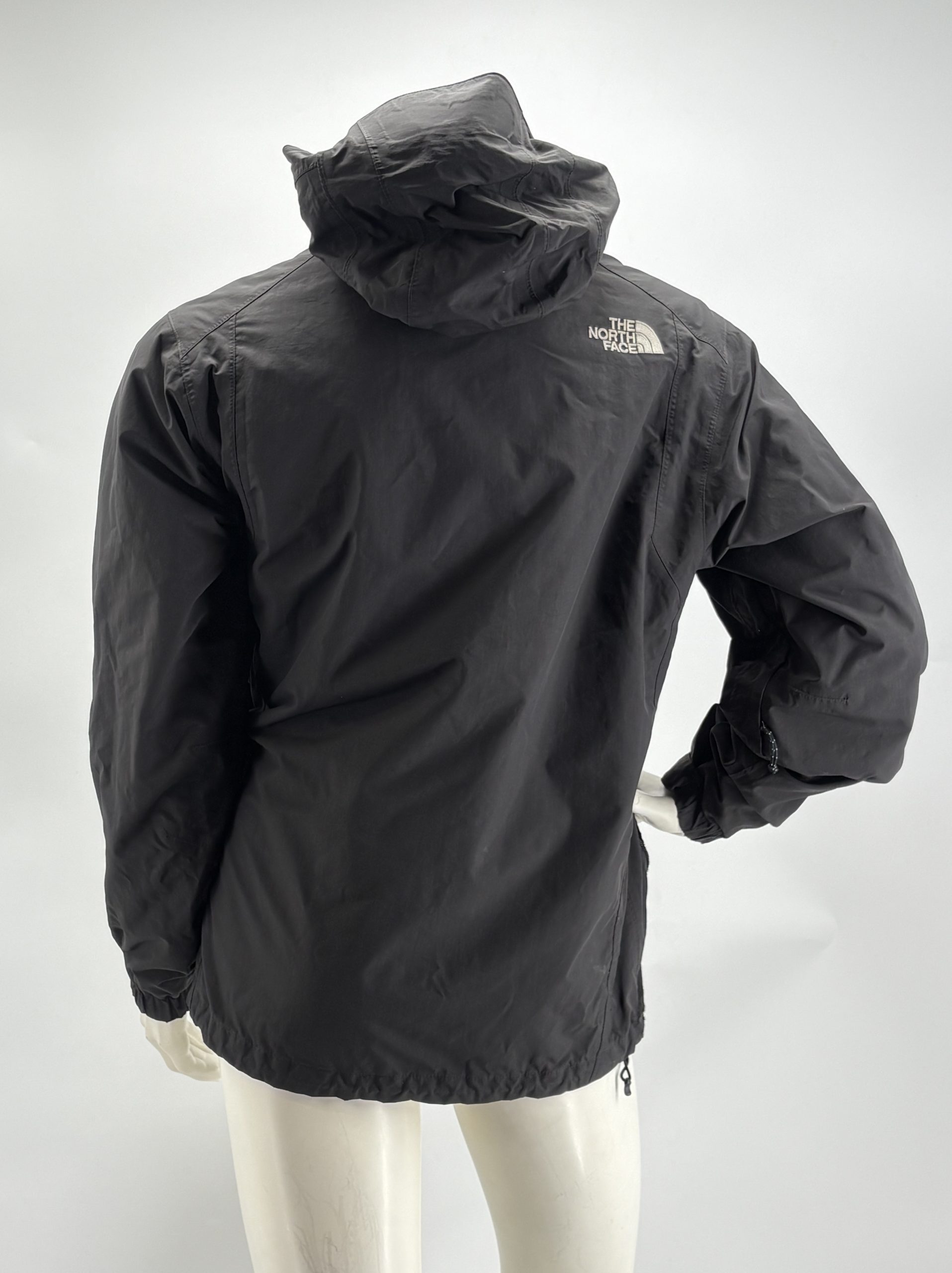 Giacca impermeabile The North Face da uomo, colore nero, taglia M. Modello con cappuccio regolabile, chiusura a zip e velcro, logo ricamato sul petto e sulla schiena.Ideale per: