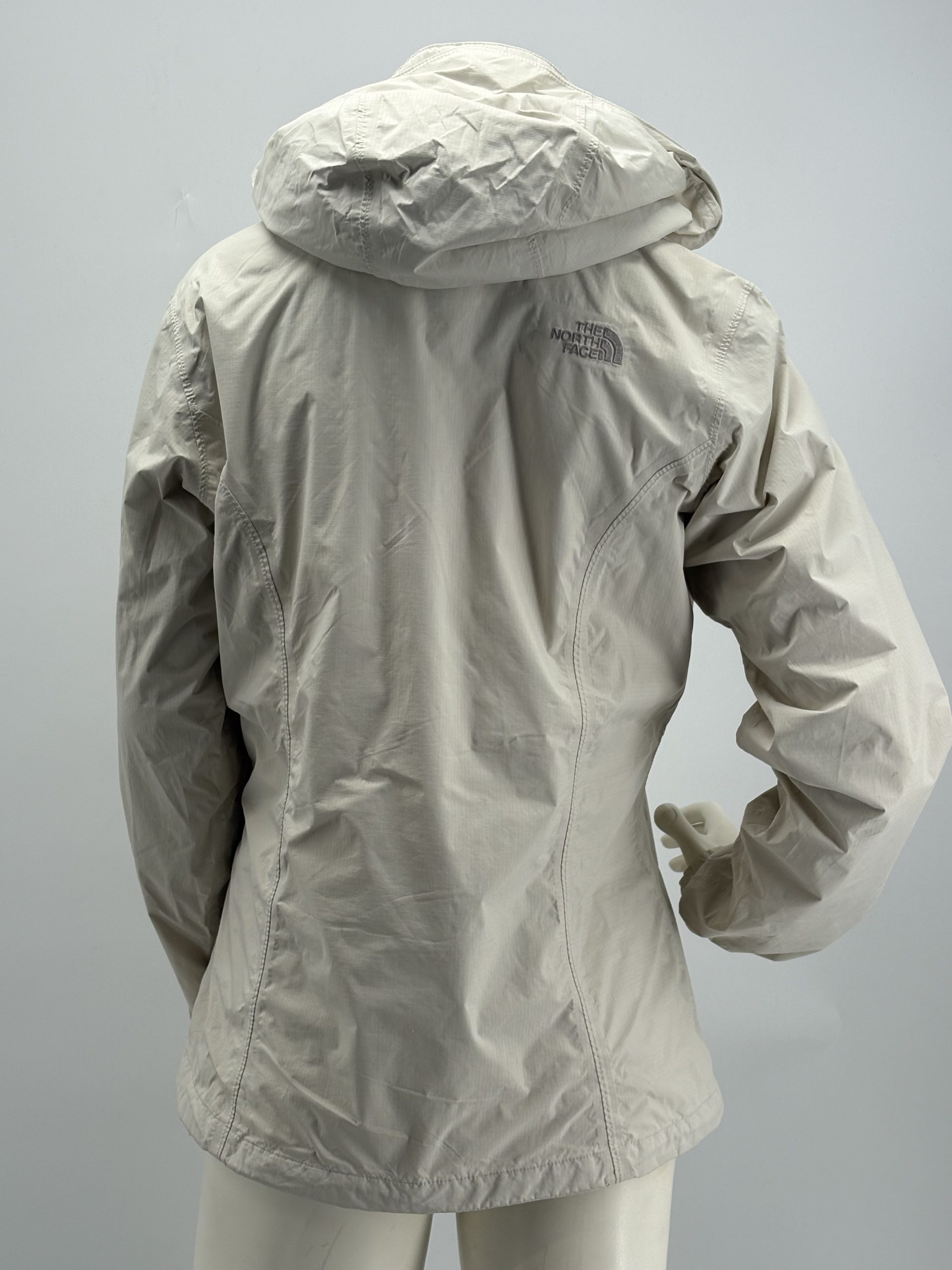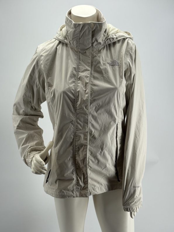 Giacca a vento impermeabile e traspirante The North Face, tecnologia HyVent, colore beige chiaro, leggera e ideale per pioggia e vento.