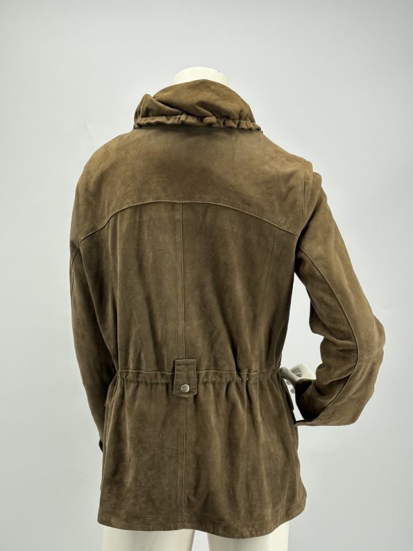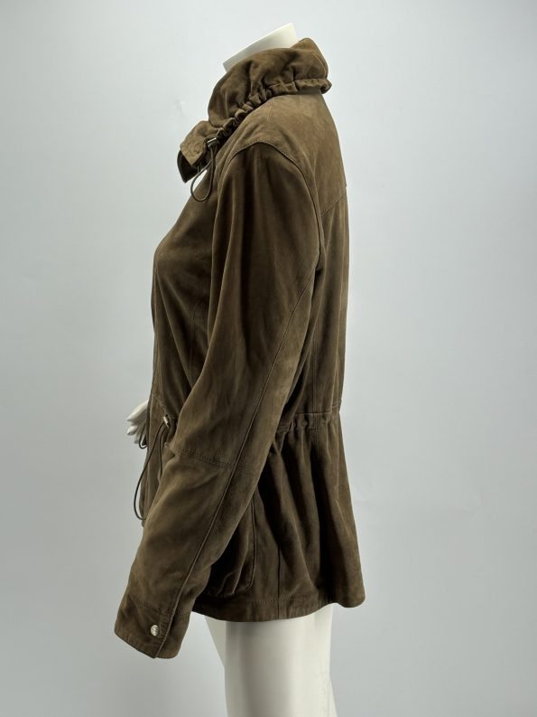 Giacca dal taglio parka della linea Weekend MaxMara, in pelle scamosciata di capra morbida e calda. Collo alto con coulisse, zip frontale a doppio cursore, tasche con patta e coulisse regolabile in vita e al fondo per adattare la vestibilità. Colore marrone talpa facile da abbinare. Interno foderato.